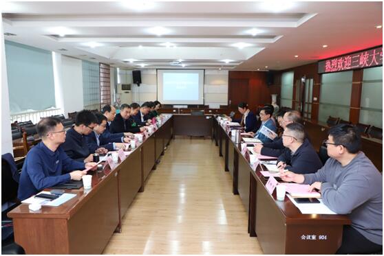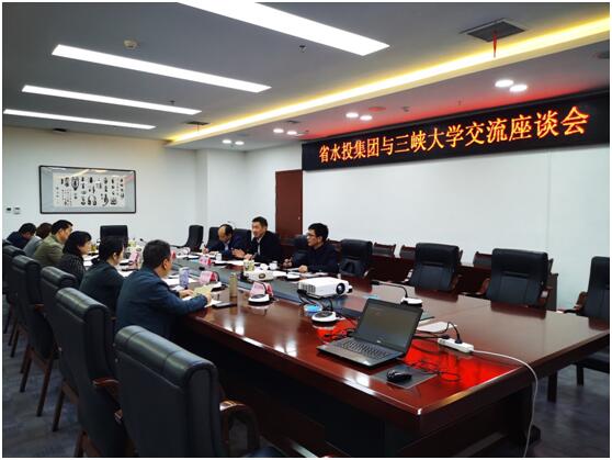 在贵州省水利投资(集团)有限责任公司(简称“贵州水投”),党委副书记、董事钟应兰对田斌一行的到访表示热烈欢迎,党委办公室、组织人事部、技术信息中心、排水运管中心等部门负责人与学校一行进行了座谈。座谈会上,钟应兰介绍了贵州水投的发展情况,期待后续在水资源及绿色能源开发、水务一体化、水生态环境三大主业上深化合作。田斌表示,双方于2015年签订了战略合作框架协议,后续将结合贵州水投的主业调整和三峡大学的学科发展规划,重新签订新一轮的战略合作框架协议,亦可结合具体重点性工程项目先行先试,为进一步合作交流奠定良好的基础。
